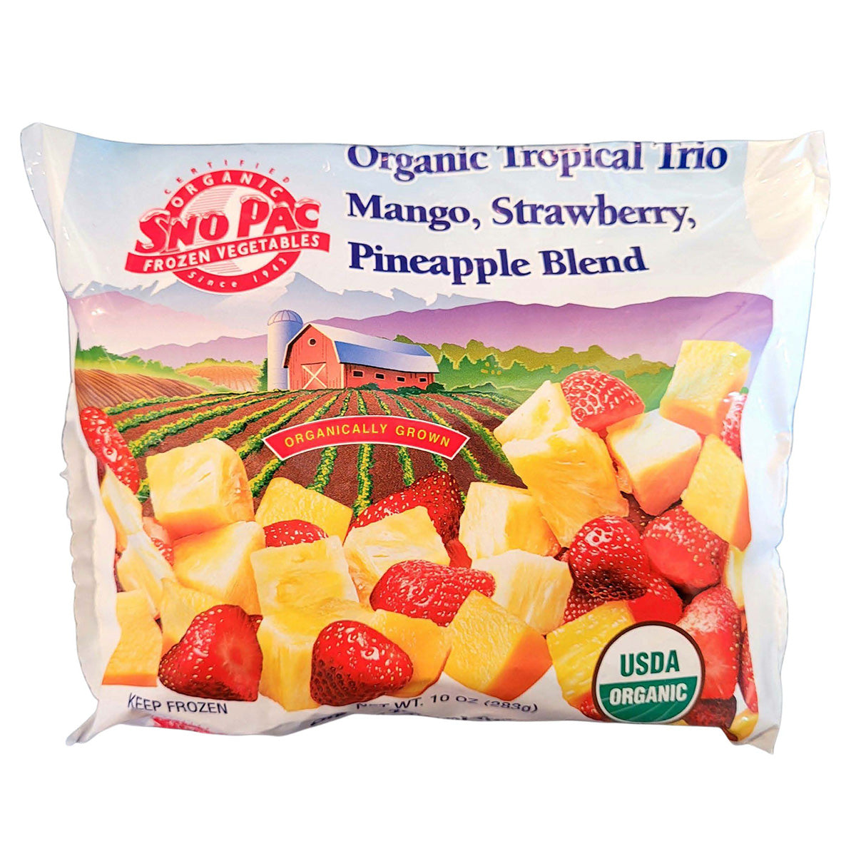 A beautiful blend of organic mango, pineapples, and strawberries. This tropical blend is perfect for healthy smoothies or pie filling! Sno Pac products are organically grown, USDA certified, and picked at peak ripeness and frozen quickly without preservatives or artificial ingredients.