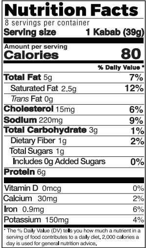 Experience the delicious and natural flavor of Colonel Kababz Lamb Kofta Kabab, made with all-natural and minimally processed Zabiha Halal lamb. Infused with aromatic Mediterranean spices, these skewered minced chicken kababs are expertly grilled over an open flame for a mildly spiced and mouth-watering experience. No artificial ingredients, just pure, quality ingredients for a truly savory dish!