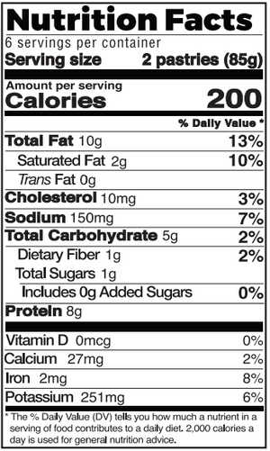 Experience the delicious and natural flavor of Kaiser Chicken Puff Pastry, which is crafted with layers of fluffy puff pastry. Each pastry is generously stuffed with all-natural Halal chicken, seasoned with an exquisite blend of spices. Made with no artificial ingredients and minimally processed for a wholesome and delicious snack or appetizer.